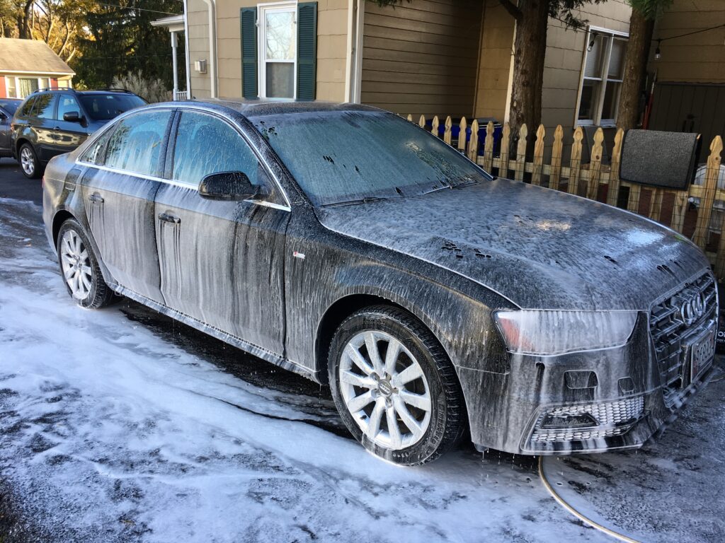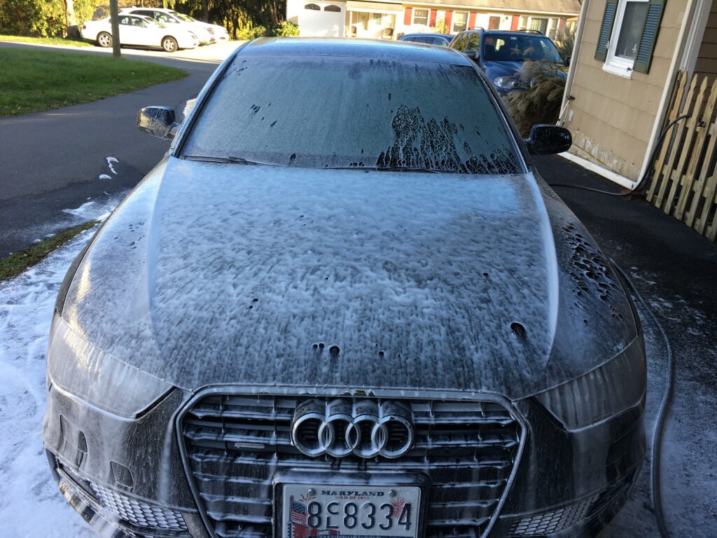 For each, I tried to capture three data points: 1. How thick was the foam when first applied? 2. How well did it cover the car once you got it on each surface? 3. How much remained on the car after 5 minutes of dwell time? That last test probably wasn’t a fair assessment. By the fourth wash the car was so clean that I’m surprised any foam stuck to the surface so I may need to re-run that test with it on a dirty car each time. This first photo gives you some idea of how dirty the car was before the first wash.