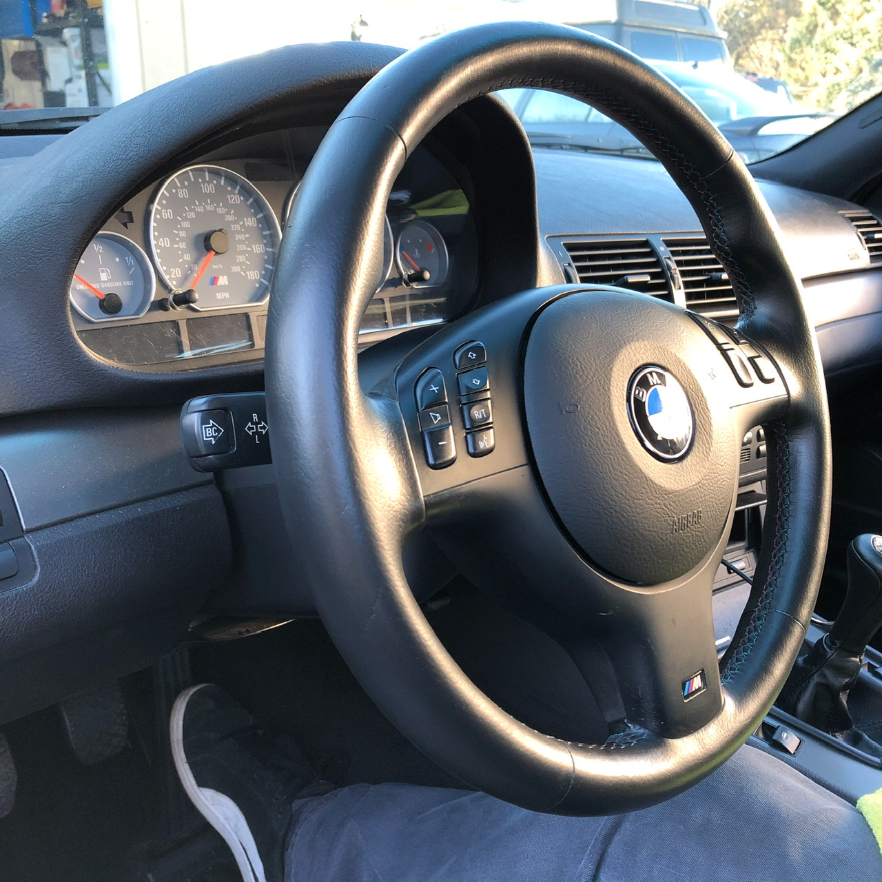 If your leather steering wheel is shiny or slightly sticky, you need a good cleaning. If it is also a bit faded, that can be refreshed as well. (I showed the detailed DIY in a previous post here.)