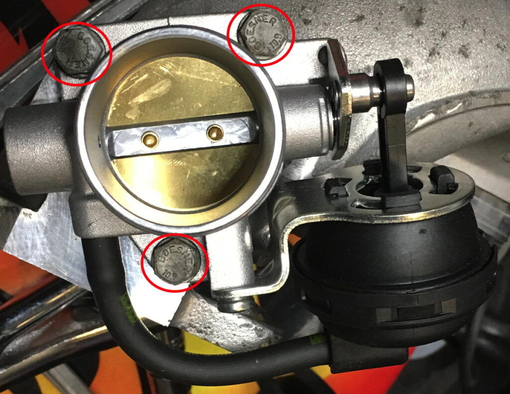 - Remove the four 10mm bolts of the throttle body and remove the throttle body. Set it aside and clean it before reassembly.