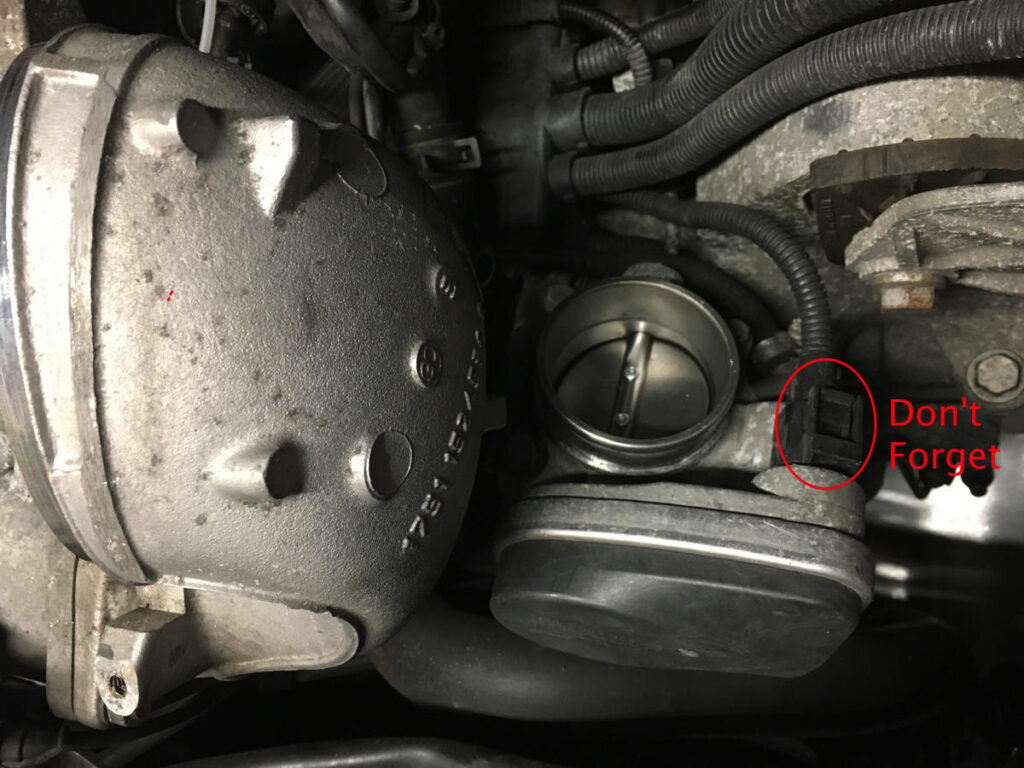 - Be sure to check the electrical connection to the throttle body before reinstalling the intake hoses.