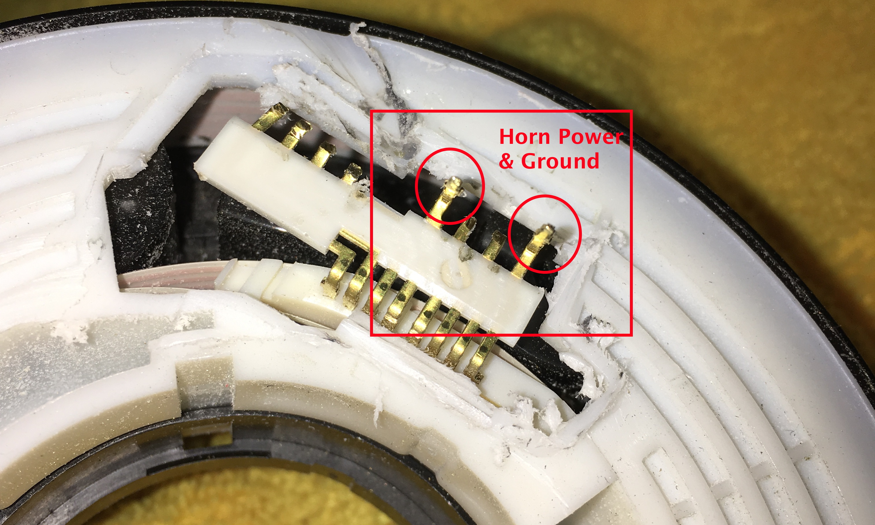 - Plug the white horn connector back into the slip-ring and re-install the slip-ring on the column.