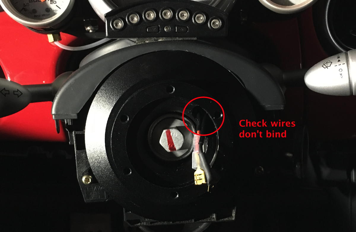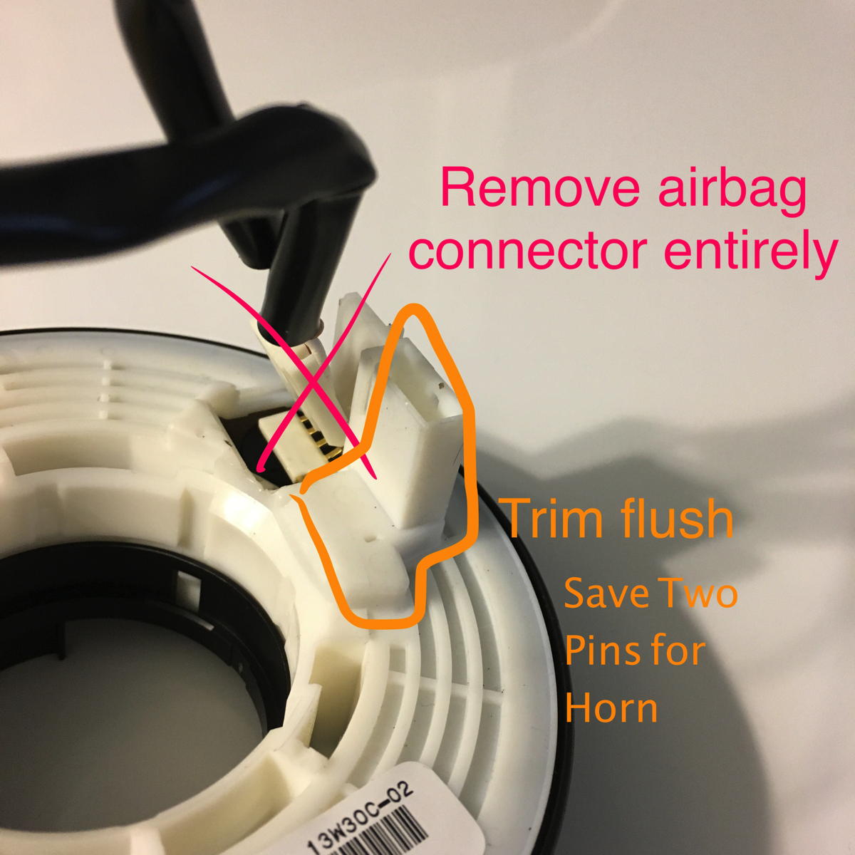 - Do you want to retain horn function and turn-signal cancel? The horn wiring and the tab that cancels the turn-signal are both part of the slip-ring. If you can do without both of these functions, the installation is considerably easier, but if you want to retain them, modifications are necessary. (Just keep in mind this is a $150 part if you screw it up or want to go back to stock.)