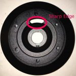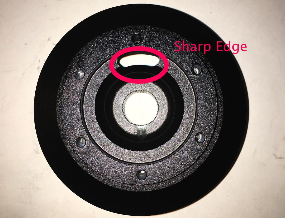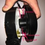 Now take a look at the slot in front of the hub and notice the sharp edge. Grind the edge down to provide relief to the wires and make sure they don’t cut through the insulation over time. Paint and then cover the edge of the slot with electrical tape for good measure and you are almost ready to install the hub.