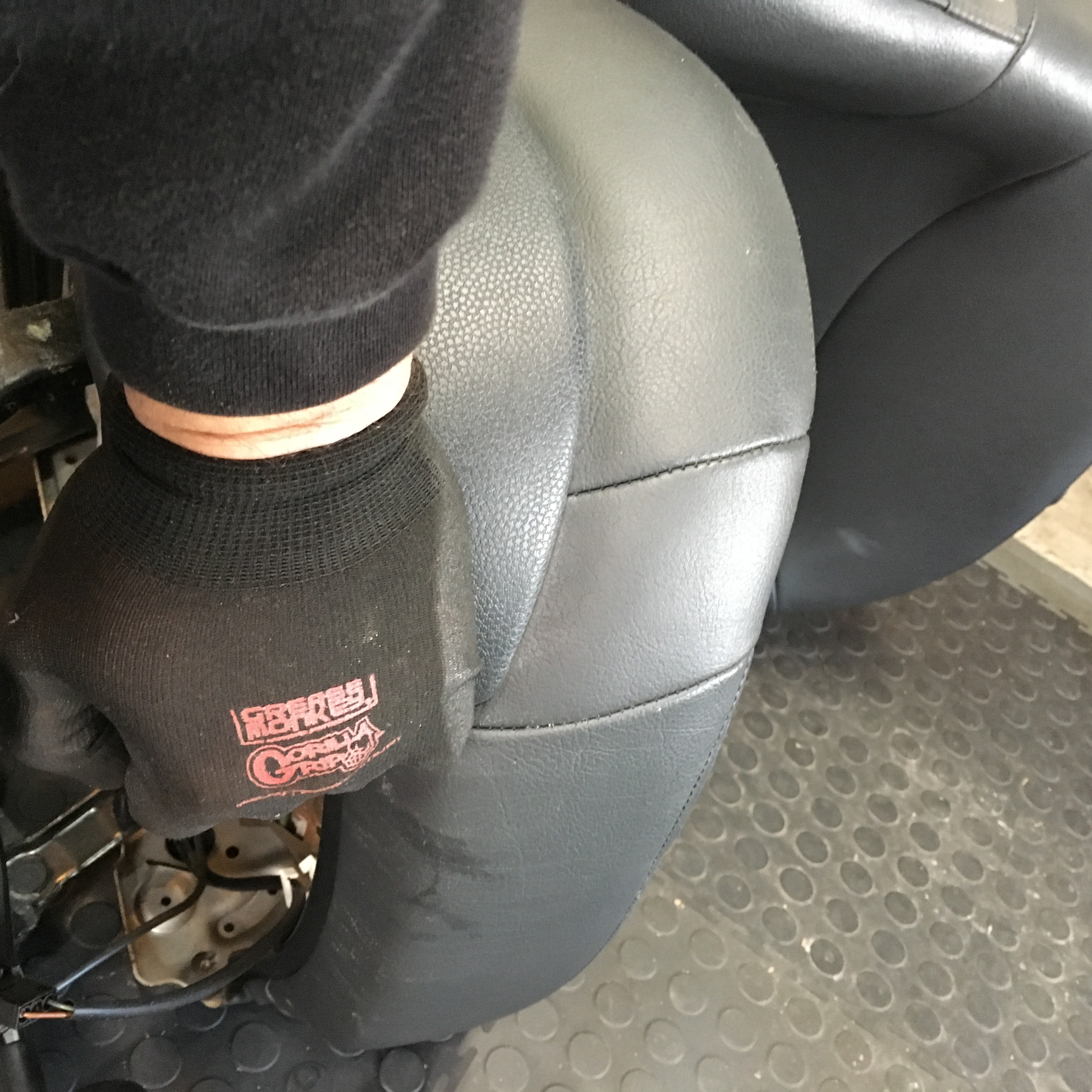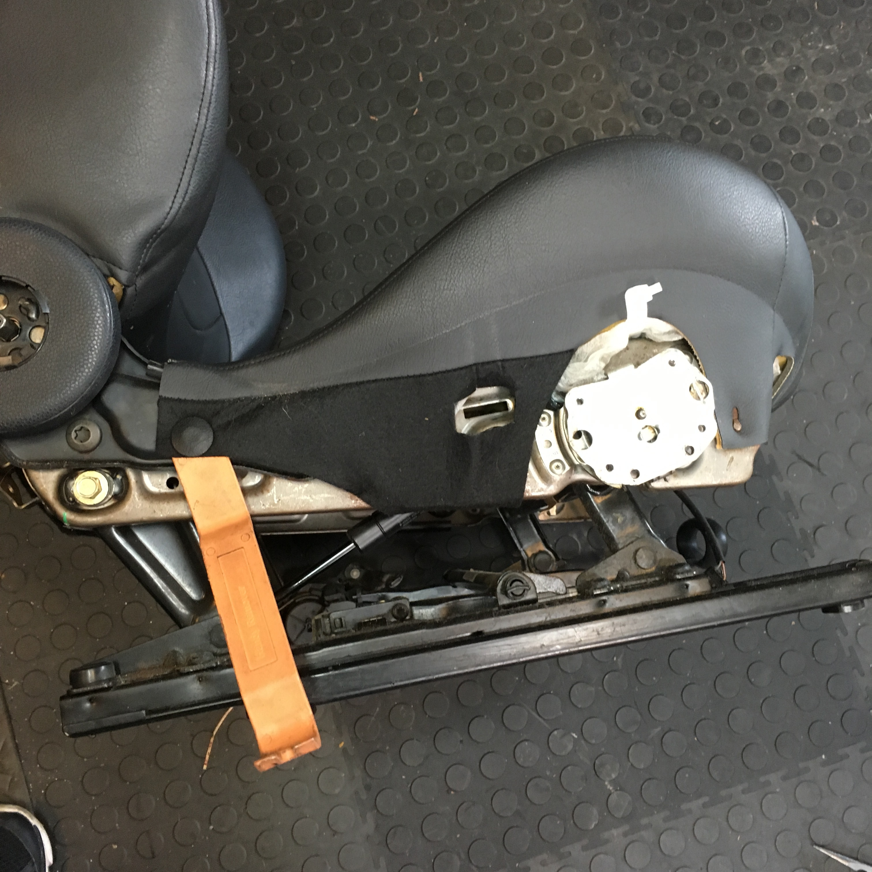 First a word of caution: MINI seats have side bolster airbags. Any time you are working an airbag you want to take precautions so you don’t set it off.