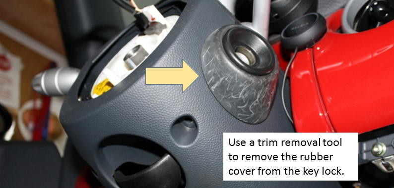 7. Using an interior trim removal tool, carefully remove the rubber boot that surrounds the ignition keylock.
