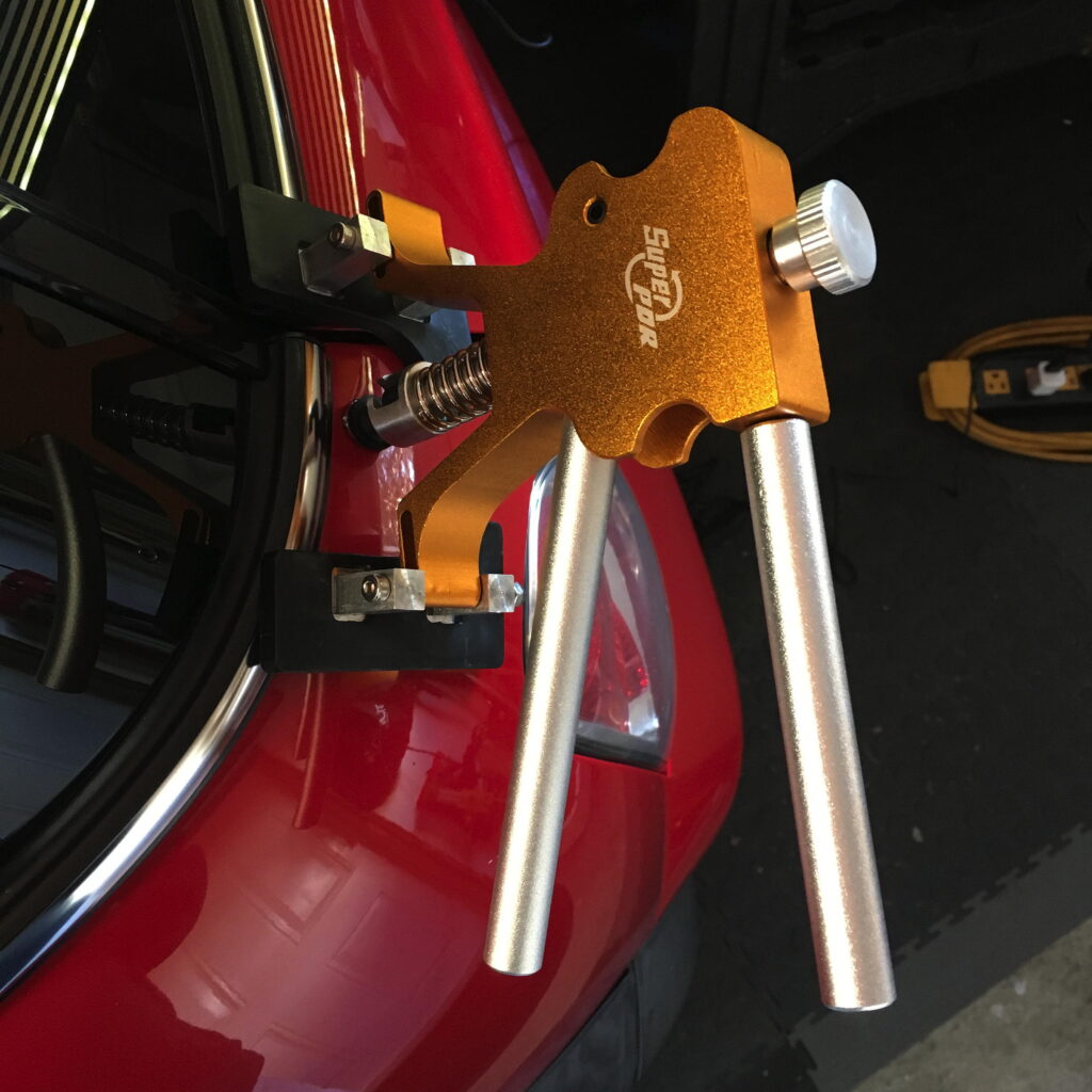 After several pulls, you can start to see the dent getting smaller. That is, until it just pulls off the clear-coat that was damaged by the falling hook. I was getting the dent to move, but crossed the line into “not-so-paintless” dent repair. I chipped away additional failing clear-coat and pulled a few more times.