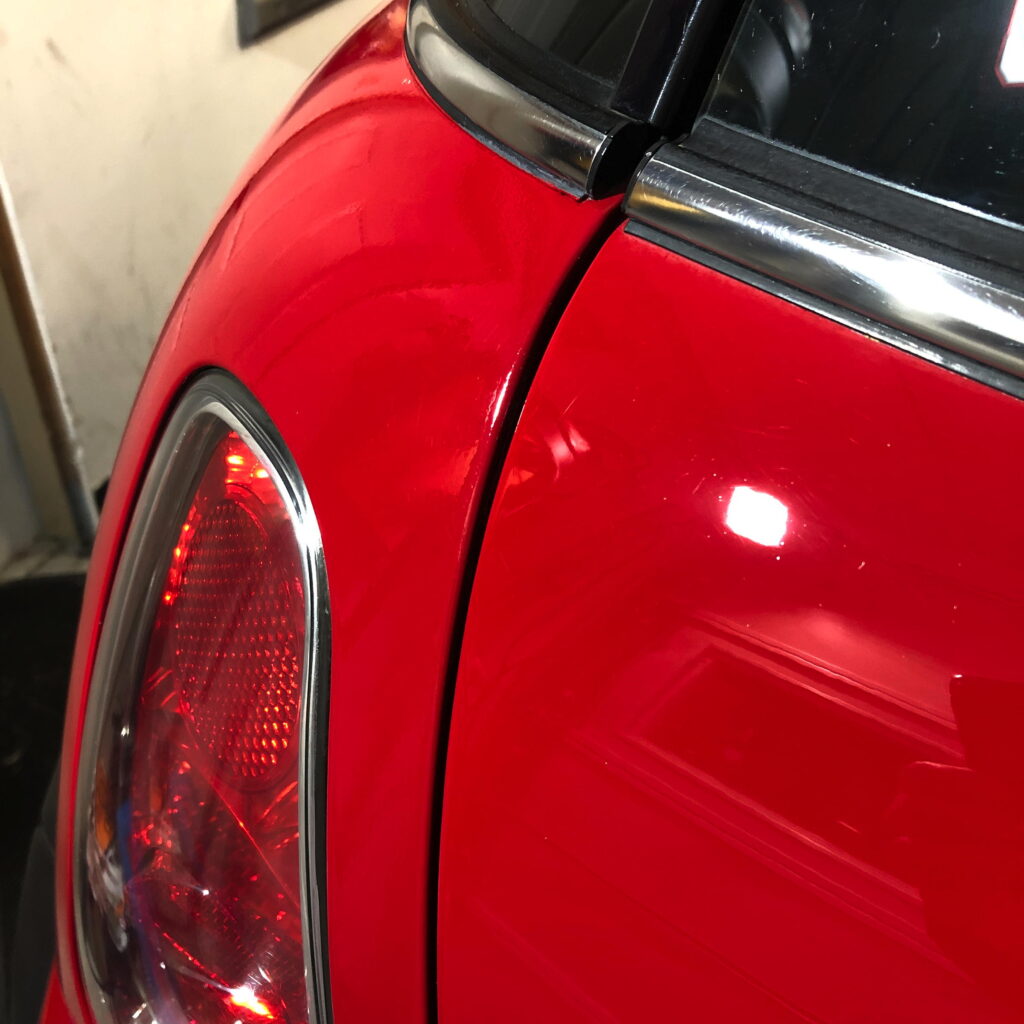 A few years ago, a strong wind blew the telephone line off of our house and into the MINI. Parked six inches to the right it would have missed. Six inches to the left and it would have broken the rear window. I suppose I should have been happy it just dented the fender. The dent was in a place that made it a poor candidate for pointless dent repair, but that didn’t stop me from trying. Ultimately I fell back on the wiz – scratch wizard that is. Here’s the journey: