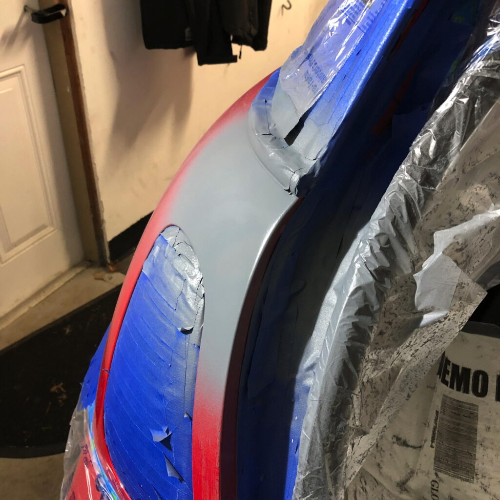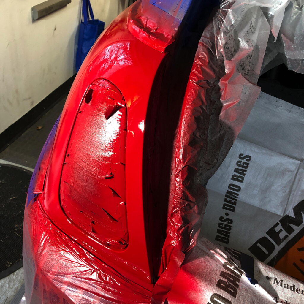 And clear-coat. All together, there were 5 coats of primer; 4 coats of paint; and 3 coats of clear-coat that I tried to feather into the rear quarter panel. I need to level the paint after it hardens a bit and then seal. Total repair cost: $125. I’m pretty happy with it. Now on to the hatch lid where the clear-coat is failing in large chunks.