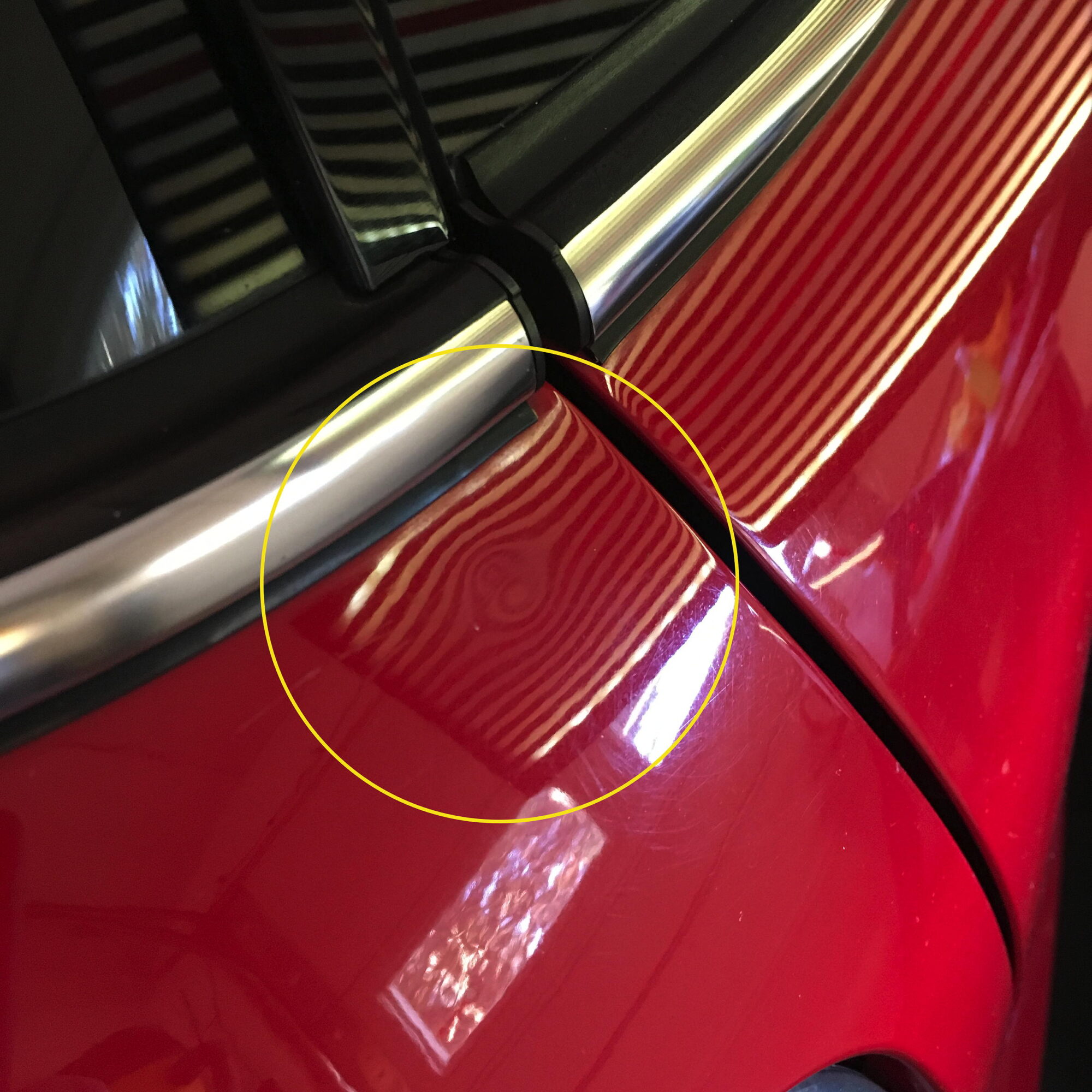 The dent wasn’t huge, but I noticed it each time I opened the hatch. The hook didn’t crack the paint, but it did crack the clear-coat, which will become an issue shortly.
