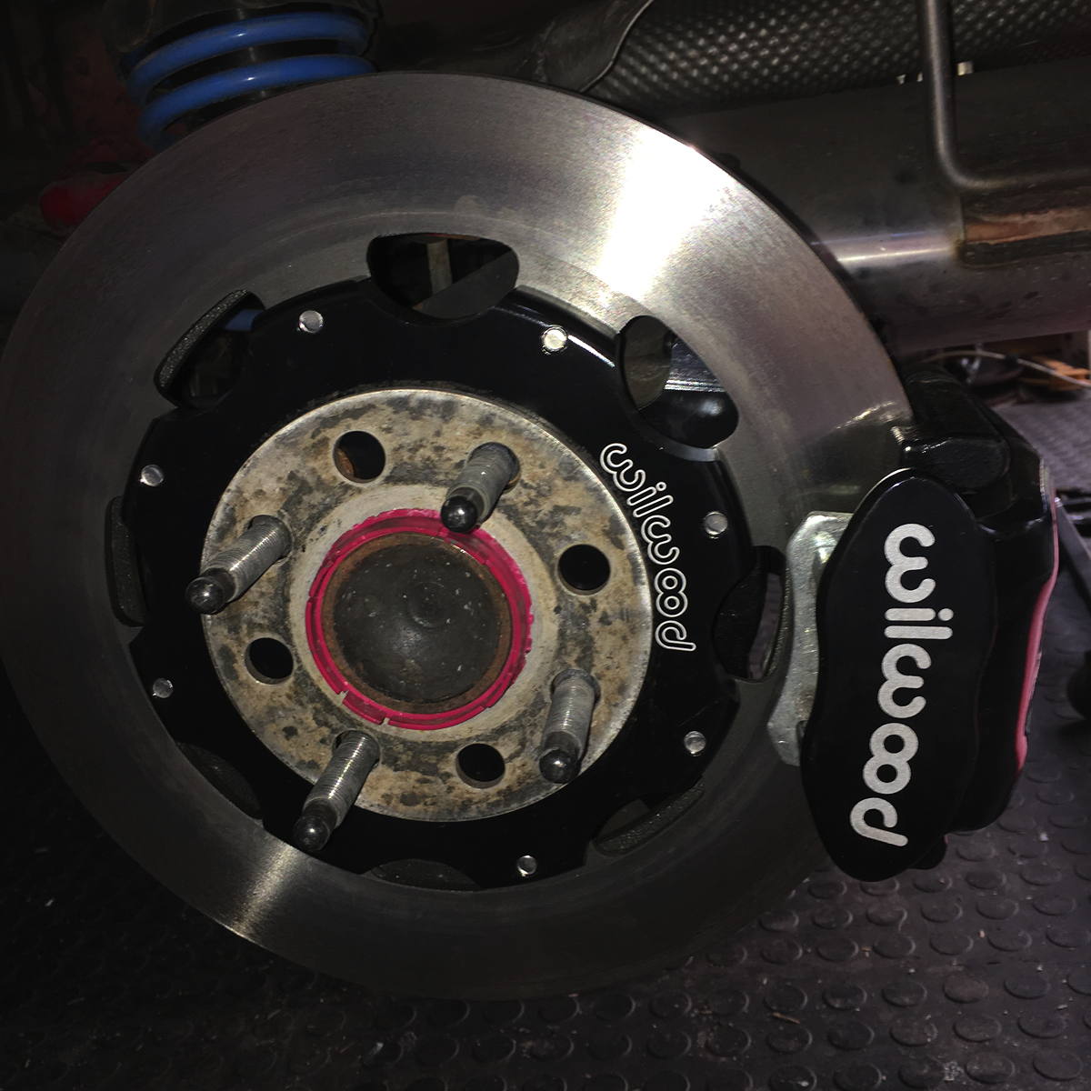 We upgraded the front calipers two years ago which immediately solved the overheating problems we were having with the stock calipers on long track sessions. We continued to have problems with high wear-rates on the rear calipers. This has been a recurring problem with this car, so we decided to swap out the calipers and rotors.
