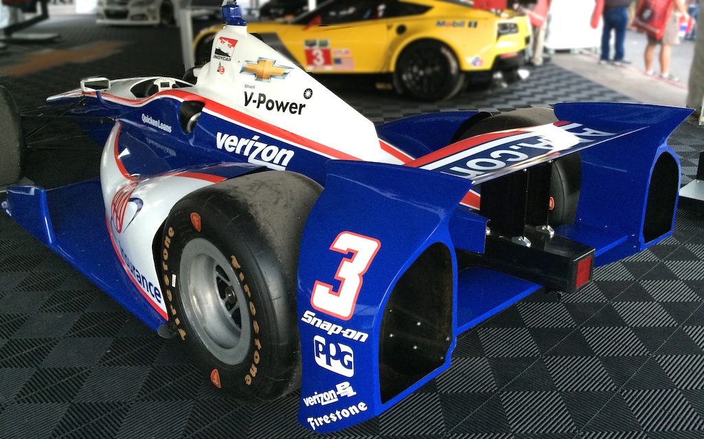 It’s interesting to compare the rear of this car to the DW12 Indycar — a contemporary design — in this case, the number 3 Indycar of Helio Castroneves.
