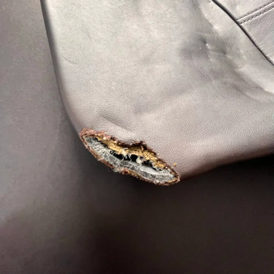 The owner of this 997 Turbo Cabriolet parked his car for a few months to ride out late winter roads in February 2020, and then the pandemic started and he wasn’t driving anywhere for several months. When he finally went to pull it out of its slumber, he learned that the turbos needed replacement, and the car sat for a few more months. Fast forward to the summer of 2022 and the turbos have been replaced and the car is brought in to refresh the steering wheel and driver’s seat bolster. That’s when we found out something had been living in the rear seat and decided to dine on the lower seat cushion.