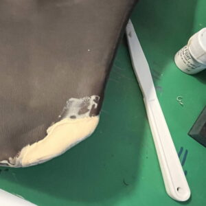 I’m pretty good at sourcing used parts. Chances of finding another Cocoa colored cushion were low, but I figured I could at least get the right part and dye it to match. I pull the part number and start to search. I’m used to having to pay the Porsche tax on parts, but always take comfort knowing that you can get almost any part for any Porsche ever made. A new one was almost $1400 and a used set was running in the $300 range. Remember this is a dinner plate sized piece of plastic with almost no cushioning, covered in leather. So the owner asked me to repair it as best as possible.