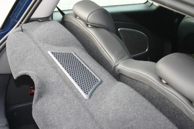 shelfSince I made the switch away from the runflats, I’ve been carrying a compact spare in the boot. Thanks to the nifty carrying bag I got from the Baglady, I have the spare, jack, and tools all in one convenient indi-blue package. It was previously secured by a complex web of bungie cords. I’ve been concerned what might actually happen to this +40 lbs package in the event of an accident or sudden stop. So I started looking for a way to secure it without throwing the weight into the seat-back. It finally occurred to me that I could get one of those strut bars for the rear and just tie the tire bag to it and the bar would take the weight of the tire and also strengthen the rear end. Win-win. I started looking at the usual Mini related websites and typically found one for around $130 but I didn’t want to spend that much, especially since I wasn’t really using it for it’s intended purpose. Once again, eBay came to my rescue. For about $70 delivered, I found what appears to be the same product. Installation took less than 10 minutes. The bar repositions the rear seats to a slightly more vertical position and creates a 1 1/2 inch gap between the seat back and rear package shelf, but when the hatch is closed you cannot really tell the difference.